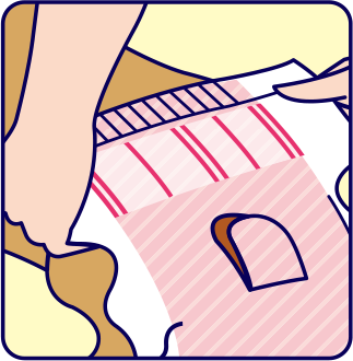 オシッコを吸収すると黄色のラインが青色に変化。