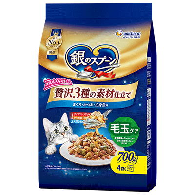 - 毛づくろい等で飲み込んでしまった毛の排泄を助けるために、食物繊維配合