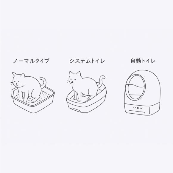 猫のトイレは大きく分けて「ノーマルタイプ」「システムトイレ」「自動トイレ」の3種類に分けられます。ノーマルタイプは砂がオシッコを吸収して固まり、その都度処理するシンプルな構造。上下2層式で、オシッコは下のシートに、ウンチは上の砂の上に残る仕組みで、シートは週1回程度の交換で済む掃除の手間が省けるタイプがシステムトイレ。自動トイレは排泄後に機械が自動で掃除をしてくれる先進的なタイプですが、本体価格や維持費が高めという特徴があります。